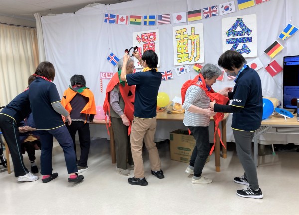 第一走者はご利用者様&スタッフ 第二走者はスタッフ 第三走者はスタッフ