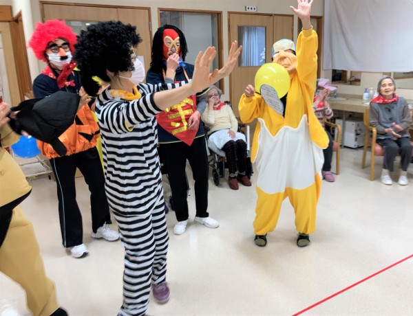 ただのリレーではつまらないので、引いた番号の仮装をして走って下さい☆