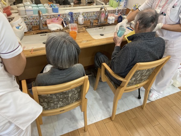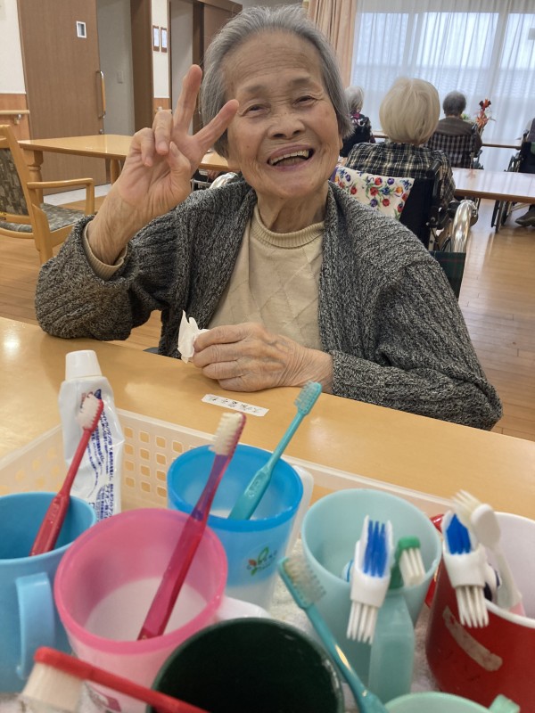 食べることをとても楽しみにされていますから日々の食事後も職員でお手伝いをさせていただいております。