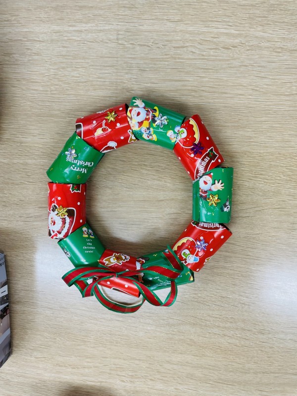 こちらが制作例のリースになります。なお、材料は、主に「ペーパーの芯」を使って制作しています!