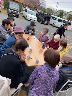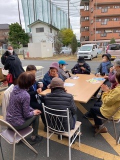 毎週月曜日のラジオ体操後の井戸端サロンも1年が過ぎ、だいぶ定着してきています。