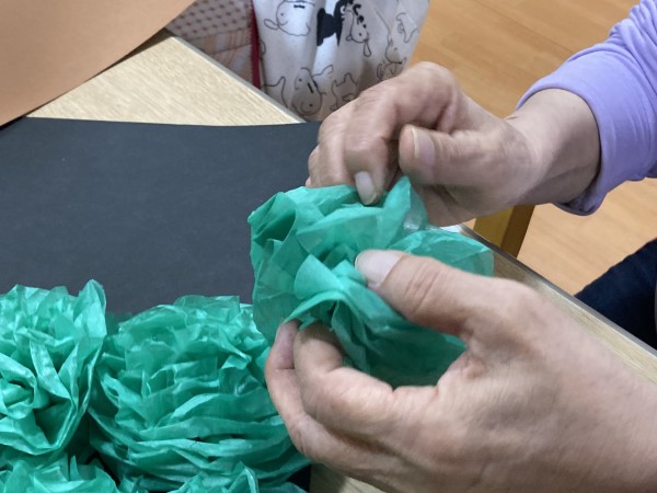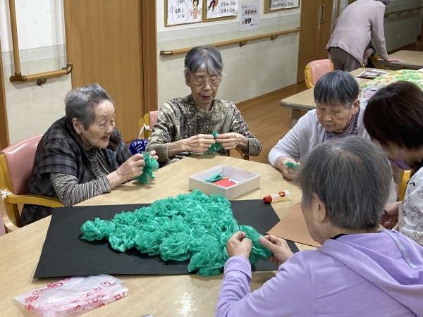 その前にクリスマスの準備として、フロアをクリスマス色に飾るためにみなさんにお手伝いしていただきました♪