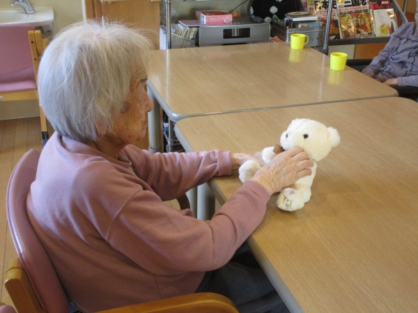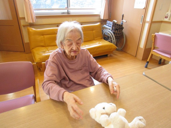 S様はご家族からプレゼントされたクマのぬいぐるみが 最近とてもお気に入りです。