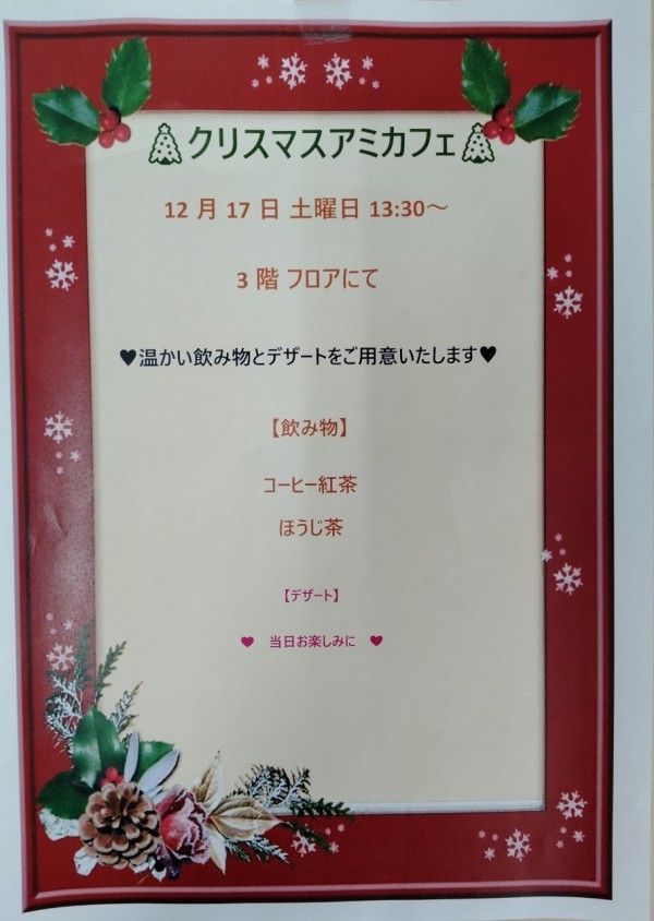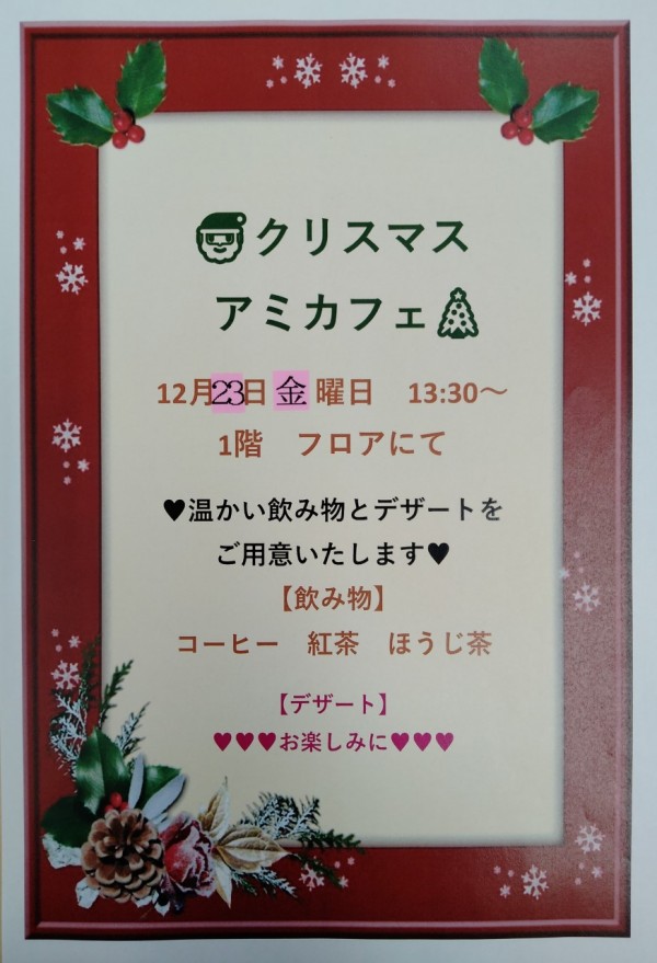 1年ぶりにクリスマス「アミカフェ」を開店いたします♪