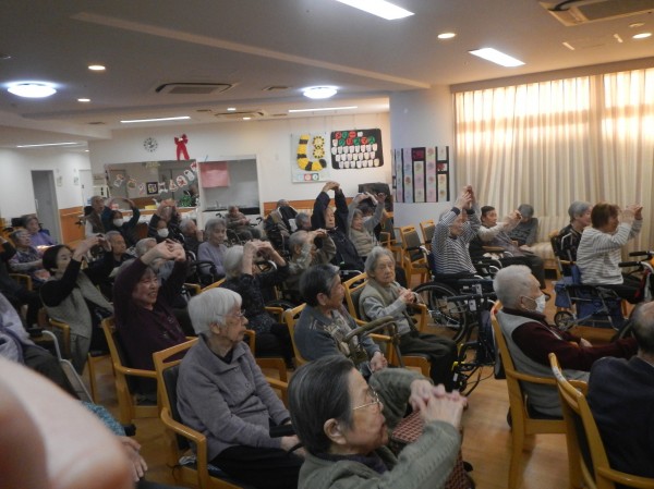 最後の曲を終えると、「みなさんいかがでしたか~!」との問いかけに、ご利用者様は大~きな〇を頭上に作り、その満足感を表していました。