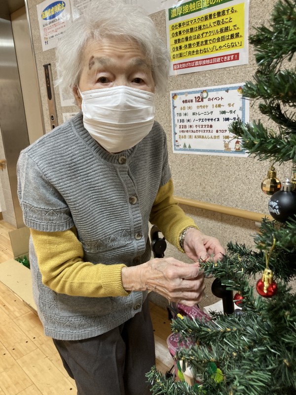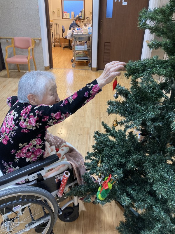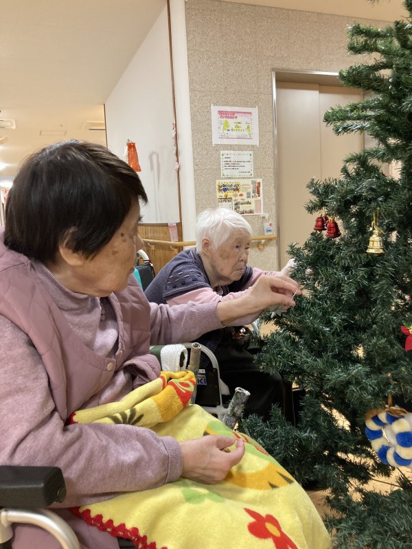 先日、本館の入居者様にクリスマスツリーの飾り付けをしていただきました。