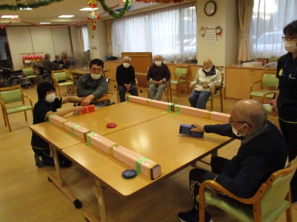 今日の運動レクレーションは『テーブルホッケー』です!