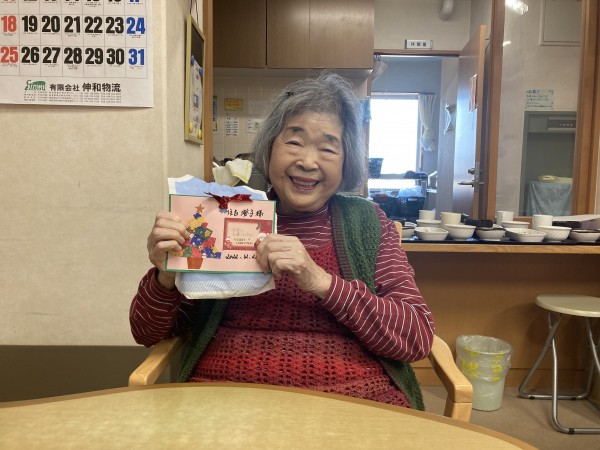 そしてこちらはプレゼントをお渡しした際の写真です。一部の利用者様のお写真を抜粋させていただきます。