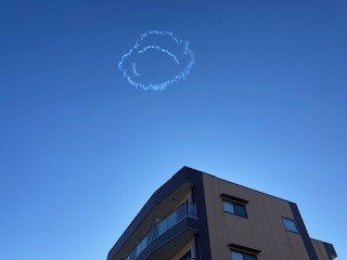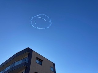 12時27分頃にこのあたりの上空に飛行機がにこちゃんマークを描くらしい!!