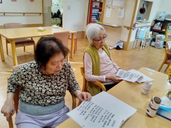 冬も本番になりましたね!先日、久しぶりに午後に季節の童謡や唱歌の歌詞本を用意して皆様で歌を歌いました♪美しい歌詞に穏やかな歌声が響き渡り、心温まるひとときでした!ミュージックセラピーの再開が今から楽しみですね♪