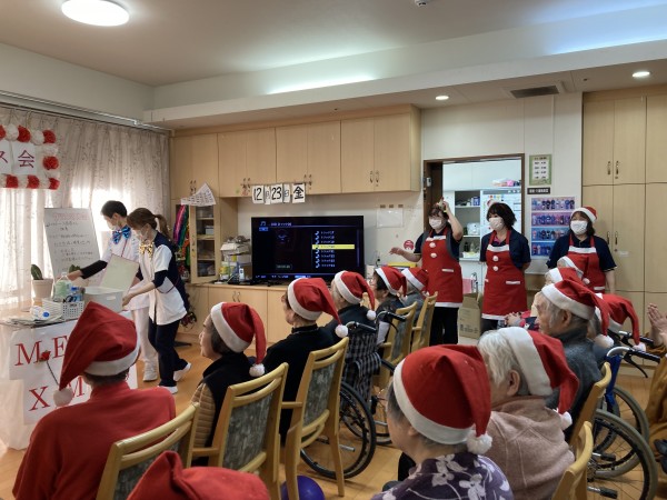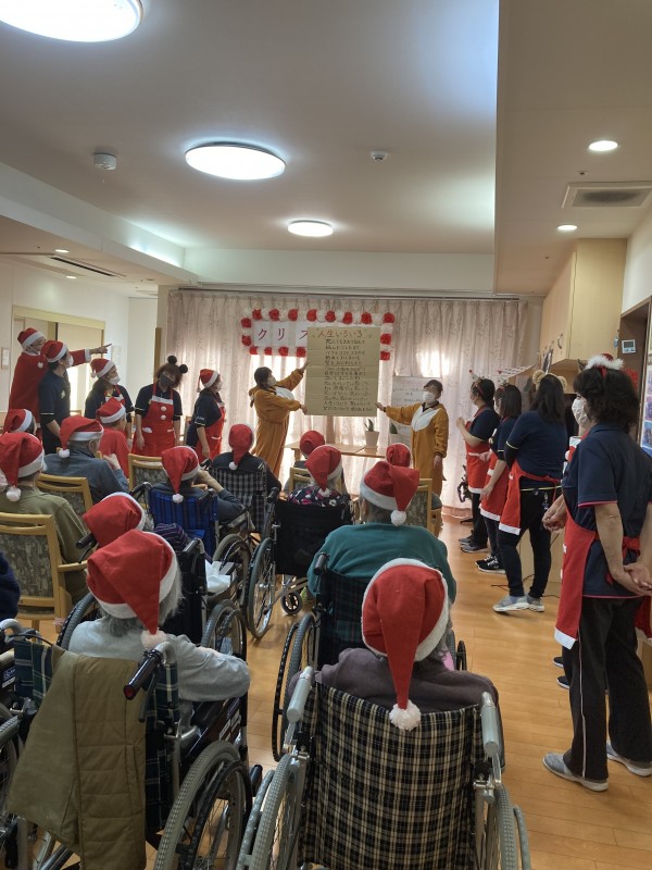 職員、入居者さんで歌を合唱しました。 手拍子して盛り上げながら一生懸命歌っていました。 クリスマス会はとてもいい会になり大成功でした。皆さんお疲れ様でした。