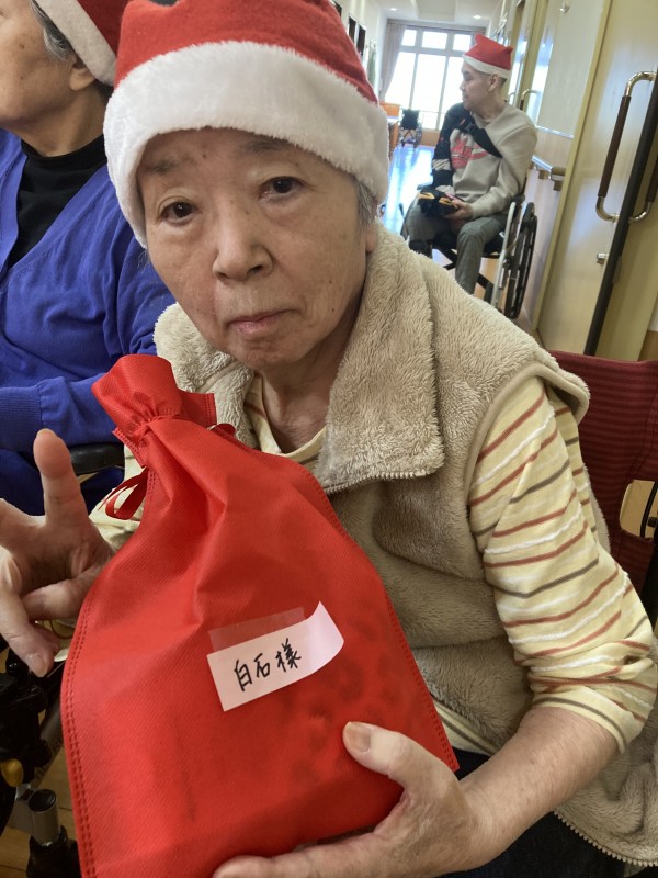 出し物が終わった後にはサンタクロースからの入居者様へプレゼントの贈呈を行いました(*'▽')