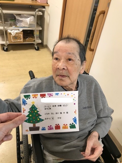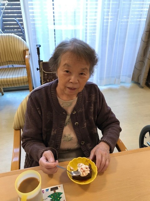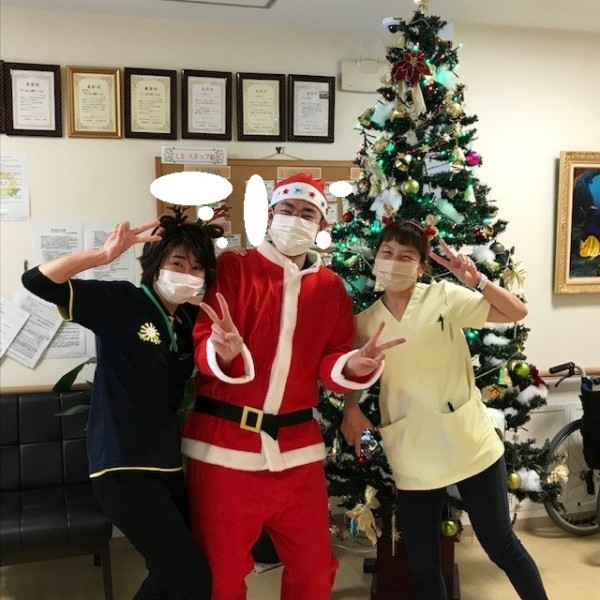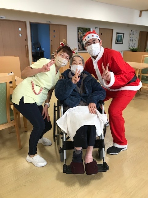 ご入居者様に喜んで頂きたい一心で、スタッフがサンタの仮装をしたり、ウエイトレスに扮して、大いに盛り上がりましたー!!