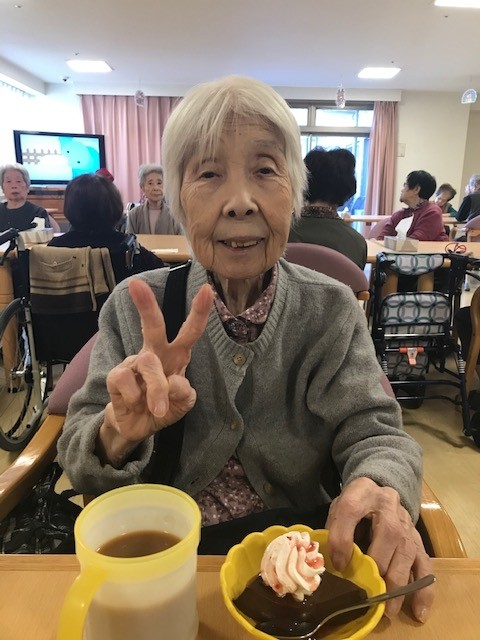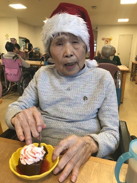 ご入居者の皆様はおいしいデザートを召し上がりながら、サンタのコスチュームやトナカイのカチューシャを身に着けたスタッフをご覧になり、とても素敵な笑顔を見せて下さいましたー!!