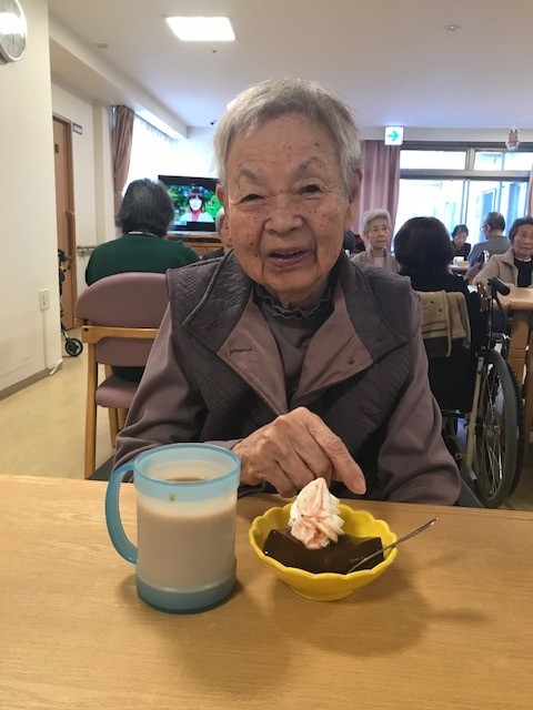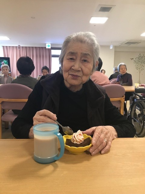 12月24日(土)アミカの郷川口では、ご入居者の皆様にお飲み物&チョコババロアを召し上がっていただき、ささやかなクリスマスカフェを開かせて頂きました。