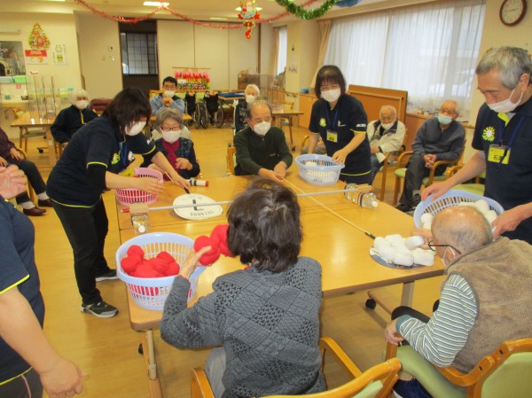 今日の運動レクレーションは『リンボーお手玉』です!