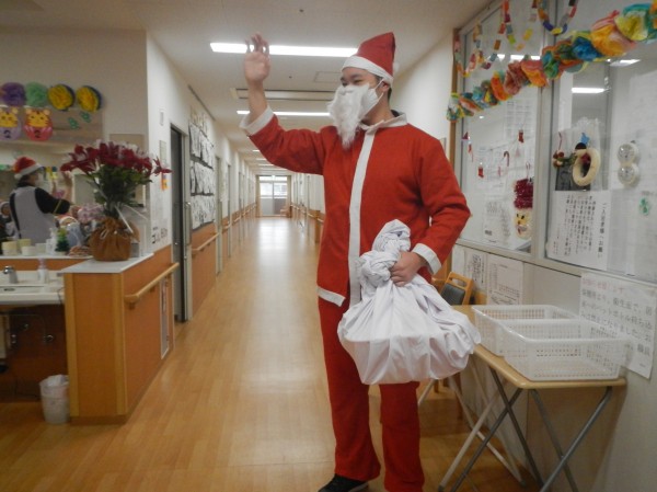 予想外の大きなサンタの登場に、集まっていたご利用者様もビックリ!(ホーム長だと思っていたのでは)