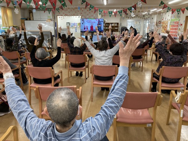 ご利用者様皆さん、クリスマスソングに合わせて、とても楽しそうに体操に取り組んでいました。