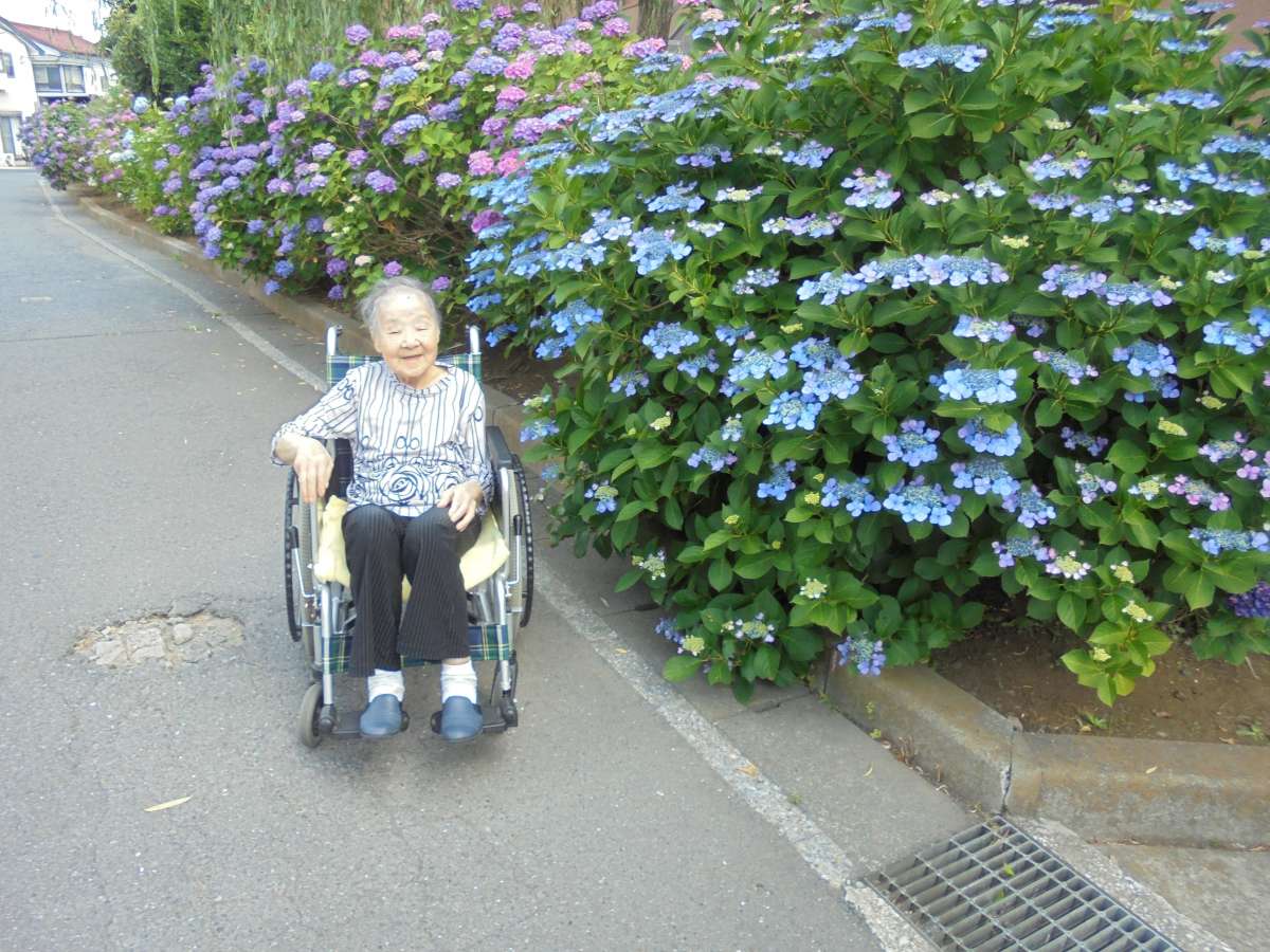 外の空気を吸って、アジサイを愛で、、、