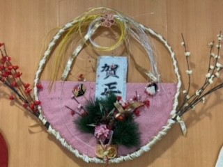 正面玄関ドアが開くと目の前に飛び込んでくる壁に掲示された正月の縁起物の数々!!