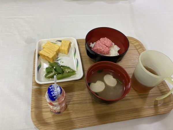 元日の夕食➡マグロたたき丼・厚焼き玉子・オクラのお浸し・ヤクルト