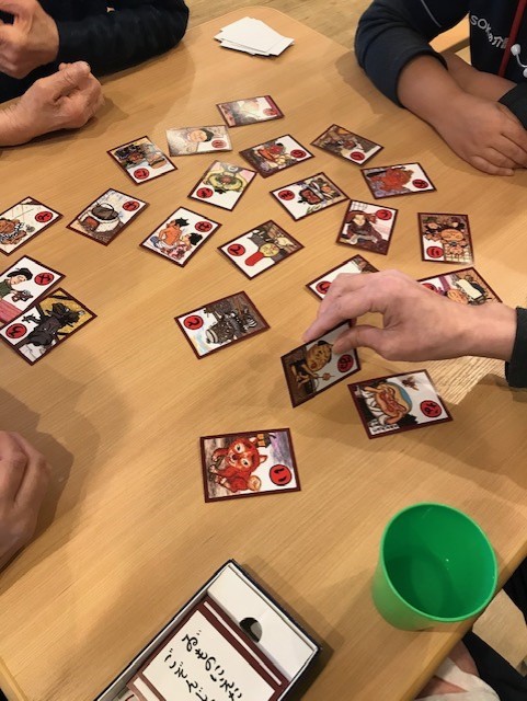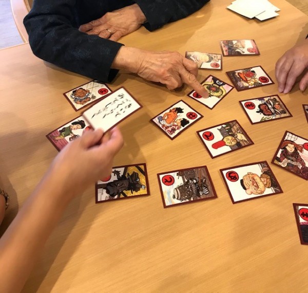 看護師と一緒にかるた遊びをしました。