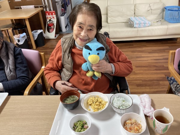 まあ今回は、ご利用者様が七草粥食べている様子が撮れました。