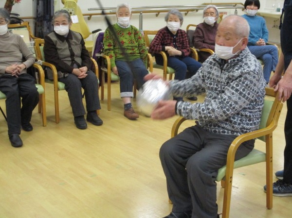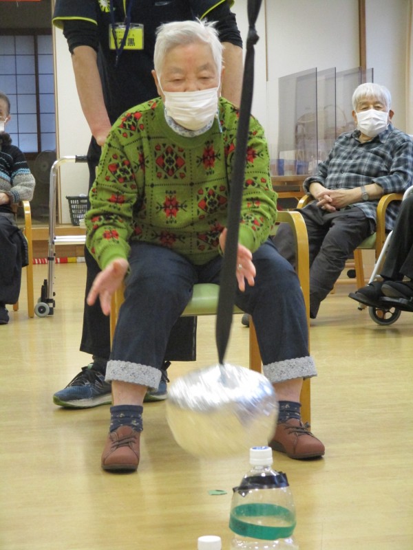 今日の運動レクリエーションは『空中ボーリング』です!