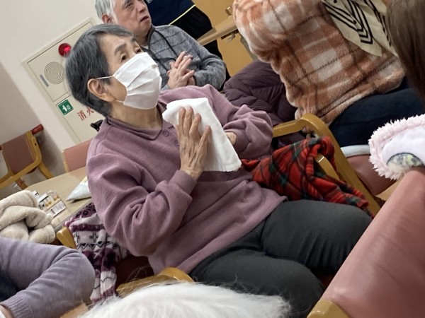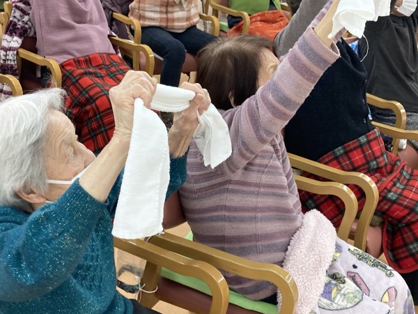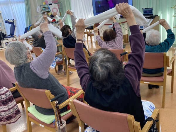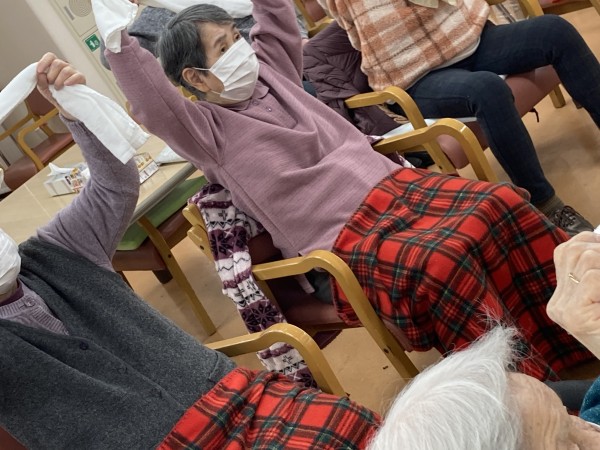 タオル体操が好きな方や覚えてる方が多くいらっしゃったので、わくわくしちゃいますね~。早速やりましょう♪