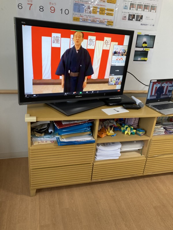 お正月始めの体操は、リモートでしたが、運動指導員の先生が着物を着て登場したので(テレビの中ですが)