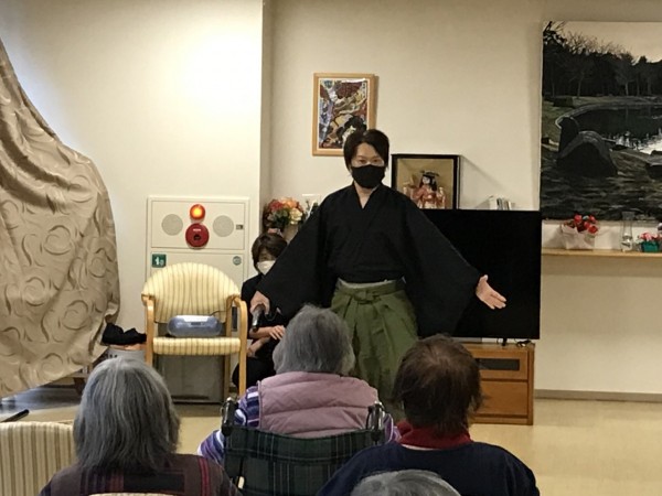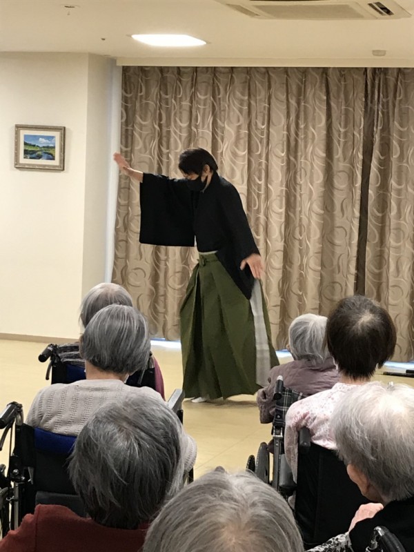 新年会と題しまして、「日本舞踊」がご入居者様に披露されました。