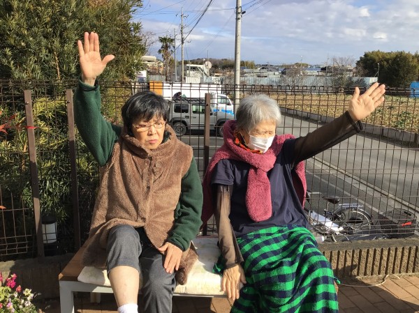 お日様に当たりながら体操しました~♪