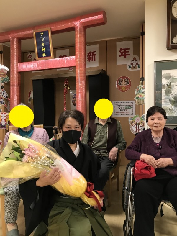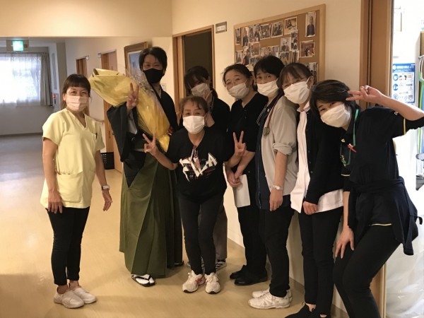 看護スタッフや事務所のみんなと記念撮影♪