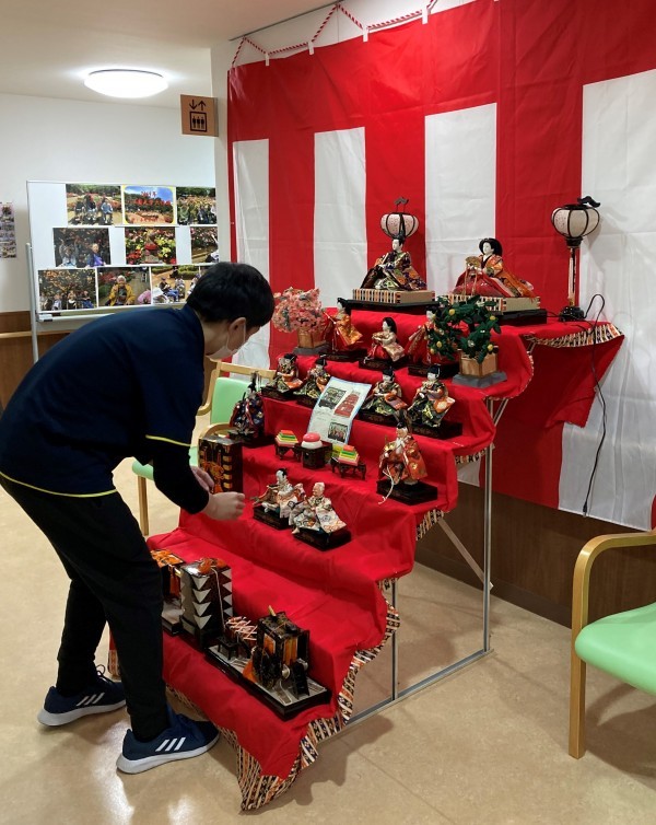 紅白幕とお雛様で玄関のホールが、明るく賑やかになり一気に春めきました。