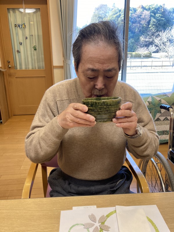 お茶碗をちゃんと回す男性ご利用者様もいらつしゃいました。