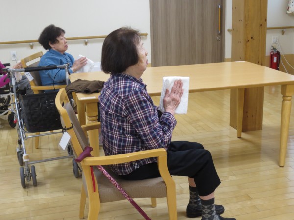 今回は皆様でリモートタオル体操を行いました!タオルを使用し回したり