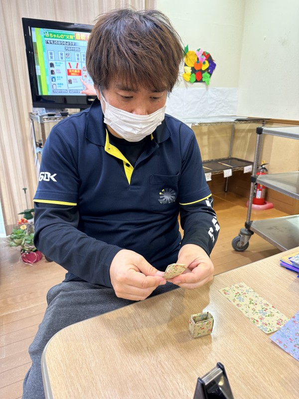 先日、折り紙で★星★を沢山作っている職員がいました!!