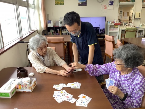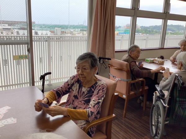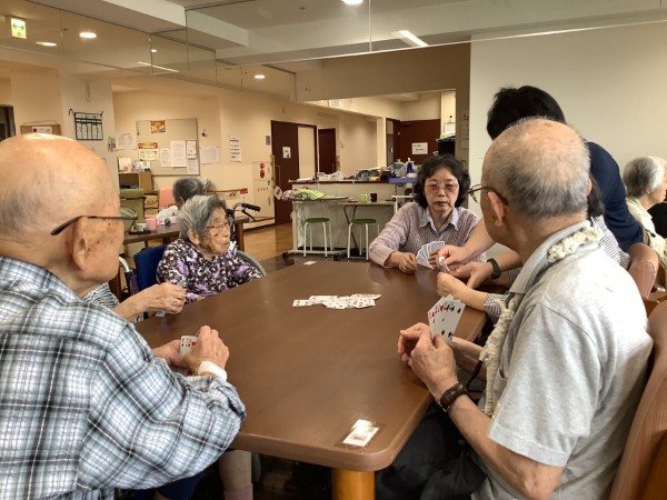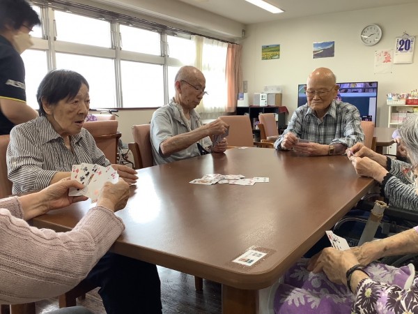 ババ抜き・7並べ等みんなでされます。時折声掛けして悩まされないようにいたします。