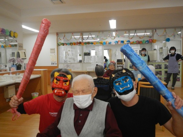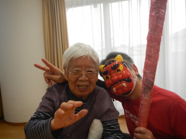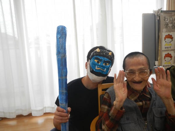 背中に疲労感の漂う赤鬼も、このチャンスの逃すまいと、ご利用者様のもとへ駆け寄りハイち~ず!と仲直り。