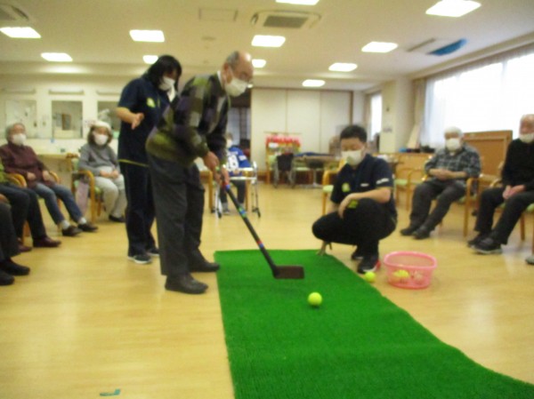 今日の運動レクレーションは『パターゴルフ』です。今回は男性陣が活躍しました!!! ナイスショット!!!