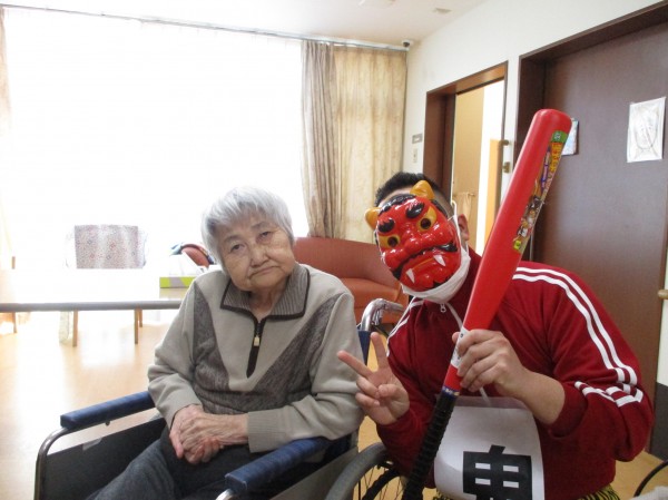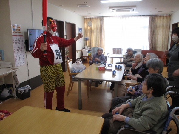 分かりやすく『鬼』の表示付きです。入居者様からは「あれ?節分って2月3日よね?」と冷静な突っ込みが・・・。