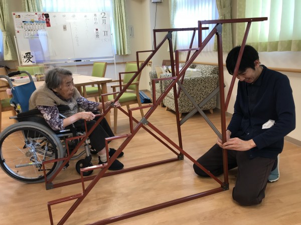 土台作成から四苦八苦しながら途中から入居者様が手伝ってくれました