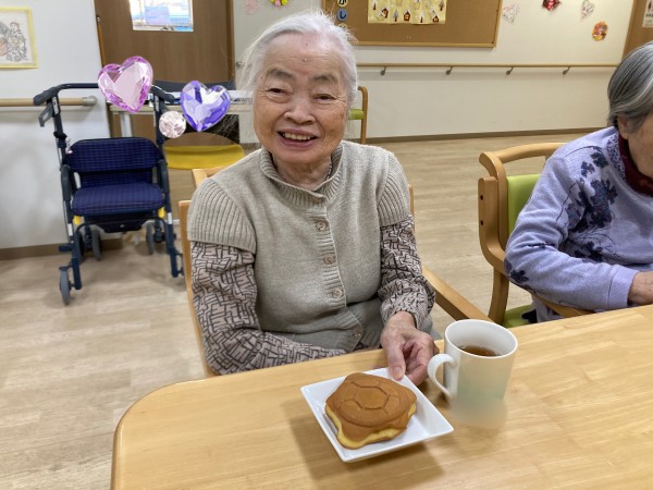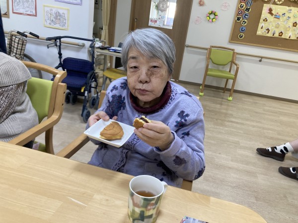 本日のお菓子は、ご入居者様のご家族様が差し入れに持って来てくださったどら焼きでした(^_-)-☆