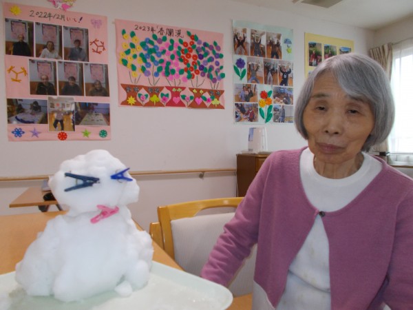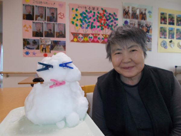 寒い日でしたが、職員が作った雪だるまのお目見えで盛り上がりました♪