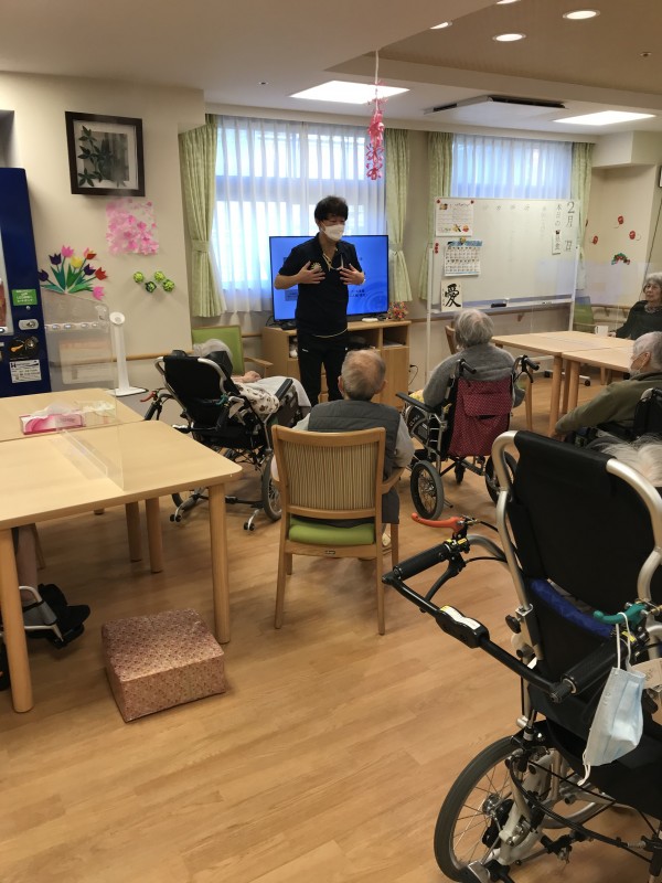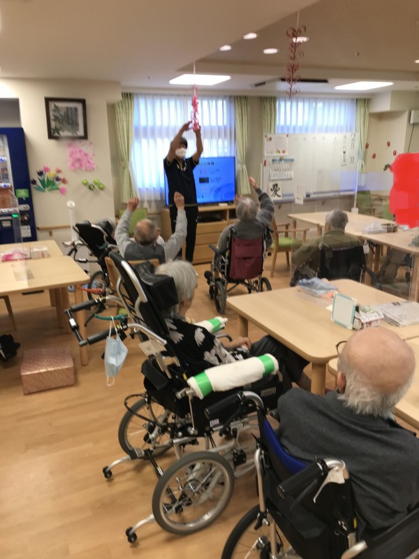 1Fの入居者様は体操好きで皆様ご自身のペースにて身体を動かされております