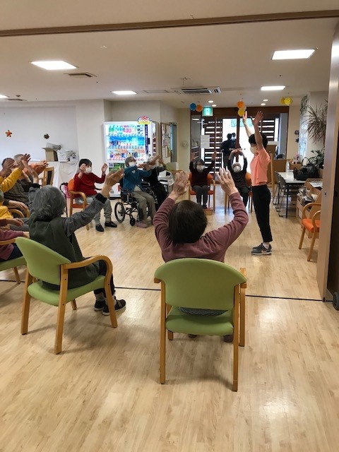 曲に合わせてリズム良く身体を前・後ろ、右・左に動かしていました。(∩´∀`)∩ワーイ