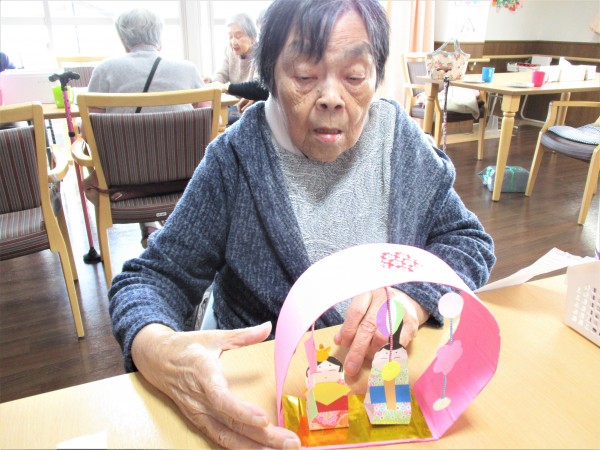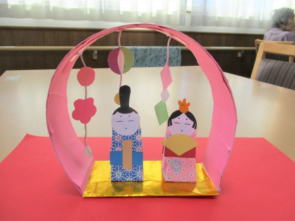 みんなの家・与野公園の2月の制作物『輪飾りお雛様』が完成しました。
