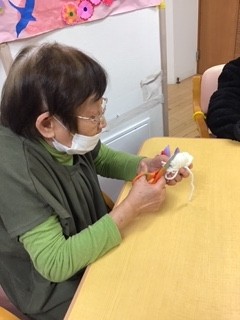 ポンポンを作るため糸を切ります!