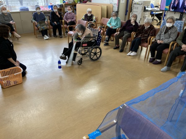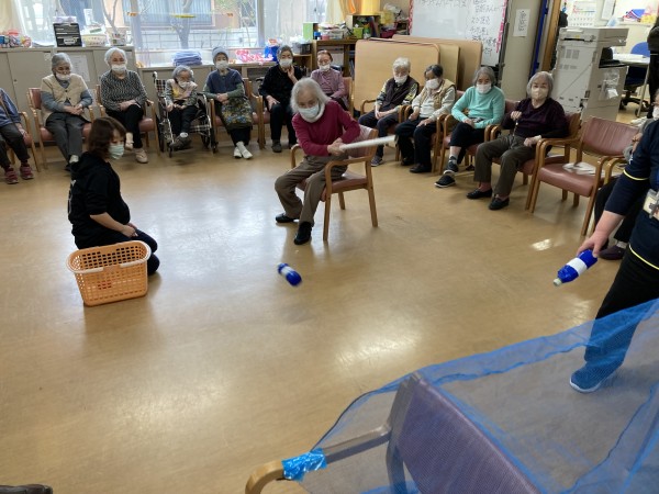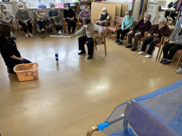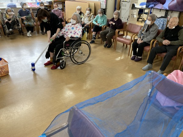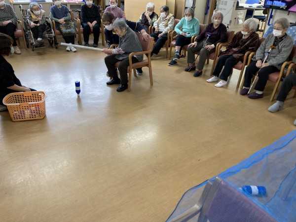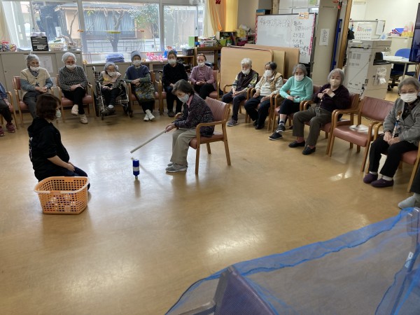 今日のレクリエーションは、ボトルホッケーでした。