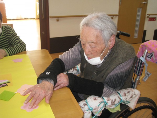 塗り絵をしたり、洗濯物をたたんだり、壁紙を作ったり、目の前で行われている工事の様子を見るのが日課になっていたり・・・。